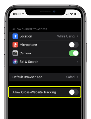 Step 3 - In Allow Cross-Website Tracking, switch is OFF (appears in white when OFF)